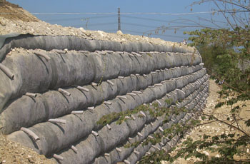 perkuatan tanah dengan geosintentik untuk pekerjaan seperti timbunan dan perkuatan pada pondasi tanah, serta dinding penahan dan bahan kedap air.