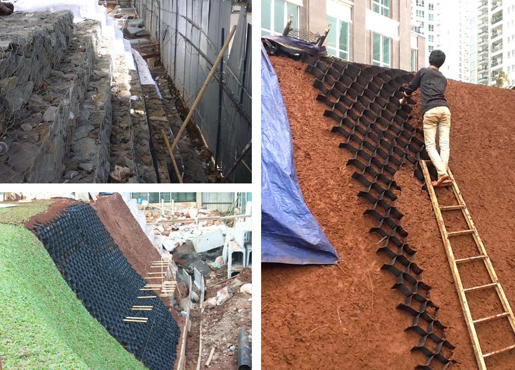 Pemasangan VersiWeb untuk menahan tanah bidang miring.