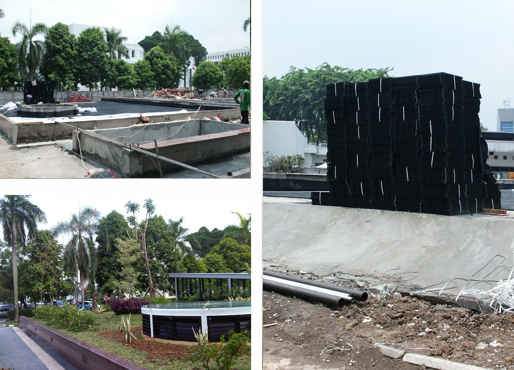 Pemasangan VersiCell di kantor Sekretaris Negara sebagai Resapan taman diatas dak beton, berfungsi mengalir kan air hujan atau penyiraman ke floor drain. Sehingga taman diatas beton tidak ada genangan air, dan tanaman tetap bisa hidup dengan optimal.