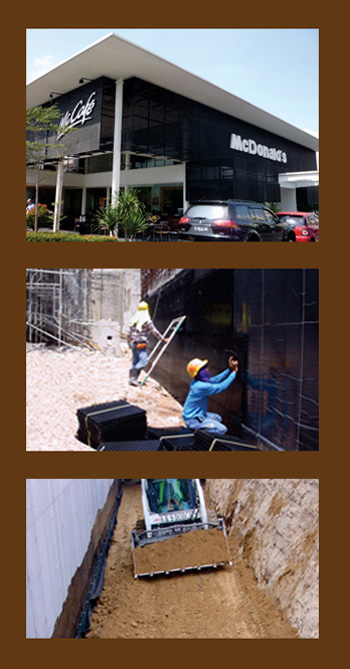 Panel drainase plastik yang ringan, kuat dan saling terkait, berfungsi sebagai sistim drainase yang dapat menangkap, mengalirkan airdari permukaan dan mengeluarkan air yang berlebihan. Danjuga sebagai pelindung lembaran waterproofing. Dapat dipasang dengan posisi tegak maupun mendatar.